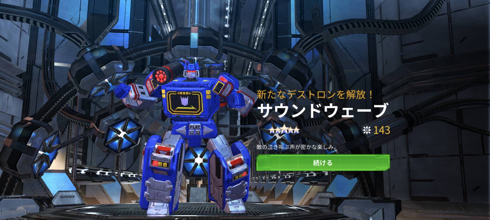 最初に共同生活……って書いたけど、そうじゃなくてちんまい倉庫みたいなとこに半壊したレーザーウェーブが収容されててそこにサウンドウェーブが通い詰めて現実逃避してる感じでもいいかもしれない。レーザーウェーブといまいち成立してない会話をしながらもうデストロンって元に戻らないのかなぁ……もし戻ったとしたら……とかボーッと考えて自室に戻ったらカセットロンたちが決して十分とはいえない量のエネルゴンをちゃんとみんなで分け合ってて、その様子を見て俺は……俺は…………って自己嫌悪で頭抱えててほしい。なのに現実逃避がやめられないでほしい。