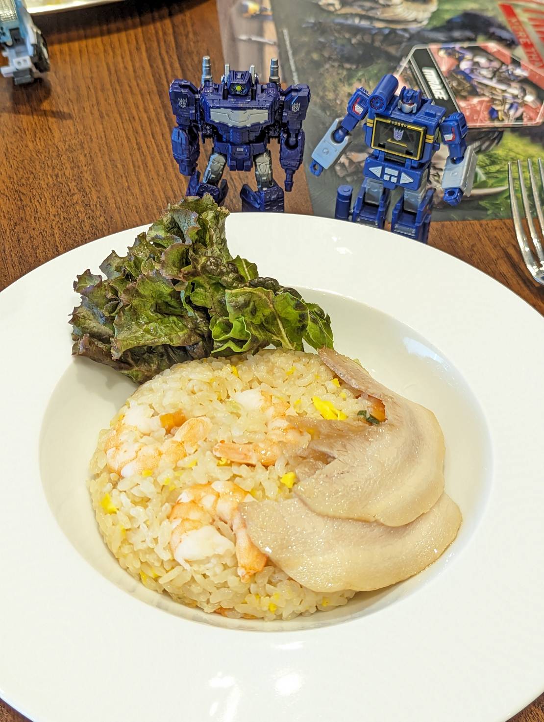 これはDISH UPのエビチャーハン。友人はマトリクスカレーを頼んでました。マトリクスカレーが一番コラボ感あったけどエビチャーハン普通に美味しそうだったんで……。